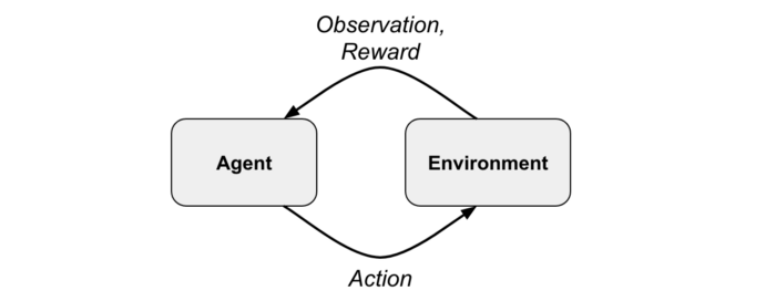 Reinforcement learning can be thought of as an agent interacting with an environment. The agent performs actions, receives rewards, and builds up a picture of the environment as well as how its actions affect the environment through observations.